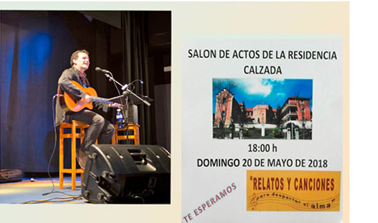 Amaneció un precioso día de primavera, ya con sus primeros rayitos de sol anunciaba que este domingo de Pentecostés iba a ser un día muy especial para nuestra Residencia. El cantautor Luis Guitarra nos iba a deleitar con un hermoso concierto. Y en cartelera se anunciaba: «Relatos y canciones para despertar el alma» No podía ser más sugerente ¡El concierto prometía! …..Y vaya, sÍ que prometió.