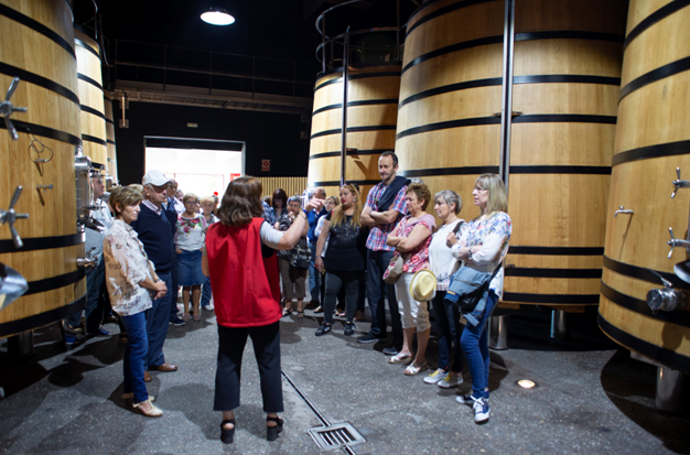 Una vez llegamos al destino, nos bajamos en las bodegas de Ramón Bilbao, donde hemos realizado un recorrido por sus diversas salas, en compañía de una guía que gustosamente nos ha ido mostrando y explicando todo el proceso para la elaboración de sus vinos. También ha atendido y ha respondido a las diversas dudas y preguntas que le planteamos. Y para finalizar, en una de las estancias de las bodegas realizamos un “tentempié” regado con un par de copas de vino.