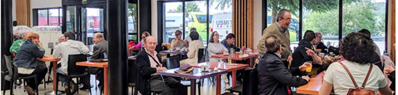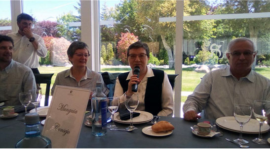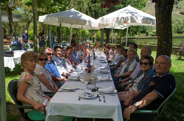 Nos dirigimos a continuación, dejando atrás Haro y Santo Domingo de la Calzada, al restaurante “La Estación” ubicado en Ezcaray. El edificio, como su nombre indica, mantiene el digno aspecto de una hermosa estación de tren de antaño. Tras un pequeño y agradable paseo por sus alrededores, nos disponemos alrededor de una larga mesa al aire libre para disfrutar todos de esta comida.